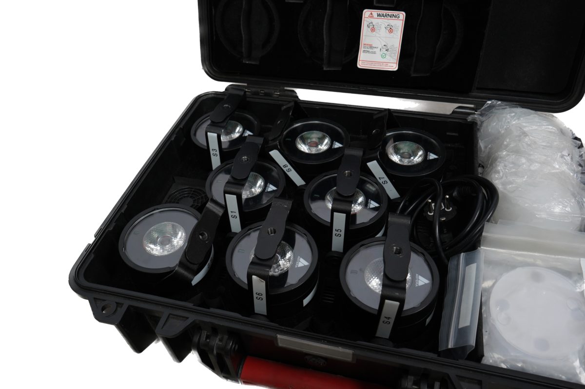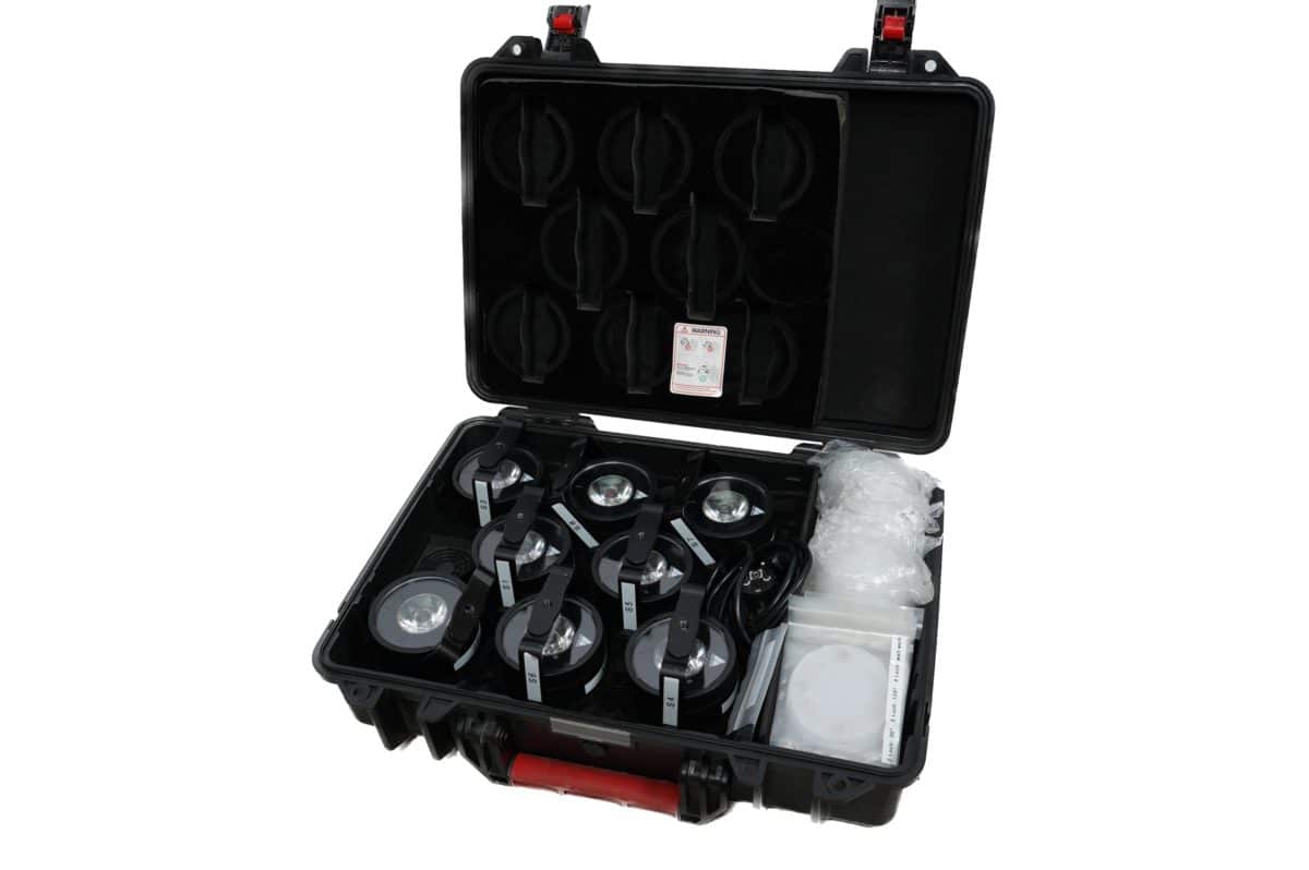 ET of 8 AX3 with hard-shell charging and transport case, includes 8x AX3 battery LED spot