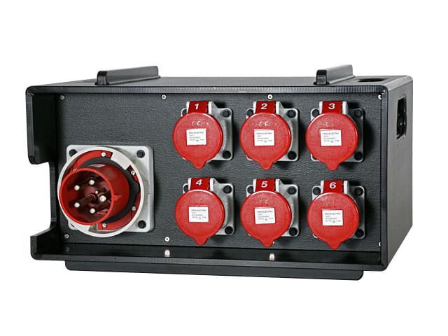 All power distribution boxes of this series can be perfectly stacked. Special fittings prevent the modules from sliding off each other. All eight corners of each distribution box are fitted with soft rubber shock absorbers. As well as protecting the boxes from impact, these prevent surface scratching of the enclosures.